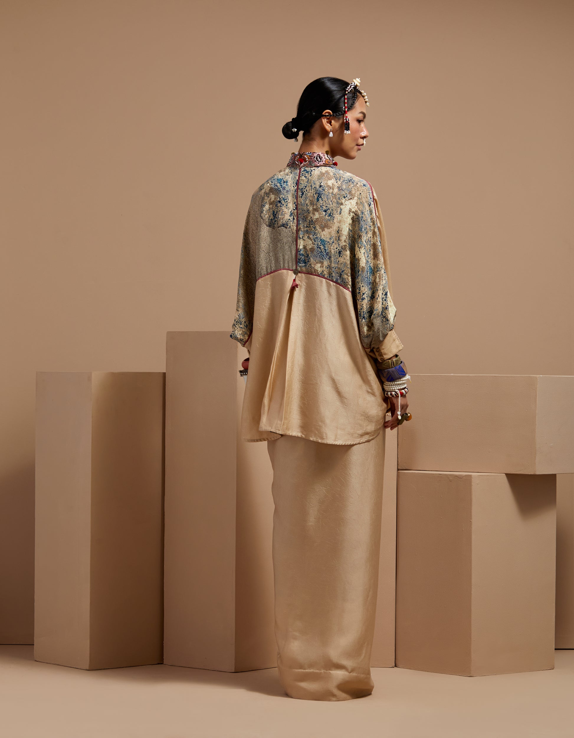 Fabric: Shirt and skirt crushed silk